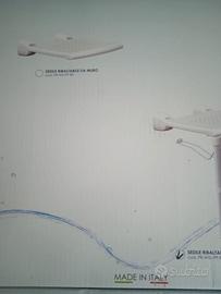 per doccia. La seduta ergonomica in tecnopolimeri, con finitura antiscivolo e ribaltabile verso la parete per ridurne l’ingombro, garantisce un ottimo comfort d’utilizzo ed è dotata di solidi supporti in alluminio pressofuso; le gambe telescopiche in alluminio anodizzato aumentano la resistenza della struttura e ne consentono l’installazione anche dove la parete di fissaggio non fornisca garanzie di tenuta; anch’esse ribaltabili a parete, si portano automaticamente in posizione di utilizzo abbassando il sedile; l’altezza della seduta è fissa: può essere determinata al momento dell’installazione a parete da 40 a 55 cm (a scatti di 3 cm) regolando le gambe telescopiche. I materiali utilizzati garantiscono massima igiene e lunga durata. Non richiede manutenzione ed è facile da lavare.