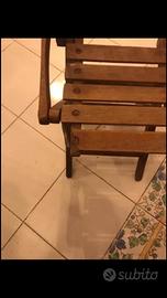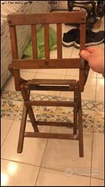 Vendo sediolina pieghevole in legno, originale d’epoca, con marchio “Brevetti-Reguiti” visibile sullo schienale.