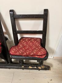 Vendo coppia unita di deliziose seggioline antiche provenienti da vecchio banco di scuola, complete di staffe per fissarle al muro. La seduta è a scorrimento in avanti. Perfette in un ingresso o in contesti rustici.