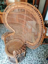 sedia regale eseguita in filamenti intrecciati di bambù per arredo. poco usato simile a nuovo.