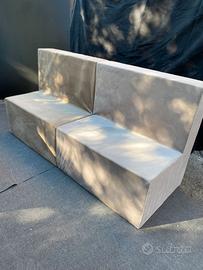 Vendo 52 sedute dritte modulari in polistirolo ad alta densità, rivestite in tessuto effetto velluto grigio.