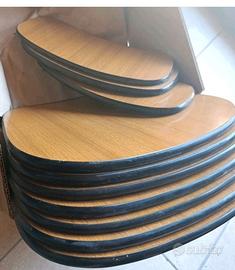 La parte superiore è in formica, la parte sottostante è in legno, il tutto racchiuso da un bordo in gomma nera.