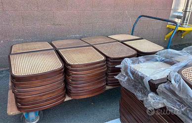 Stock di sedute in paglia di Vienna, disponibili più di 250 sedute (no schienali). Misure indicate in foto. Nuove. Prezzo totale 1700 euro Ritiro presso domicilio. NO PERDITEMPO