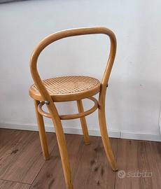 Sedia in legno fibra natural rattan. Artigianale vintage ha un segno di rottura sull’anello in legno allego foto