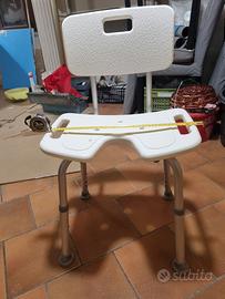 Vendo seggiola in alluminio in buono stato da utilizzare in doccia e/o vasca da bagno per persone con mobilità ridotta , regolabile in altezza .