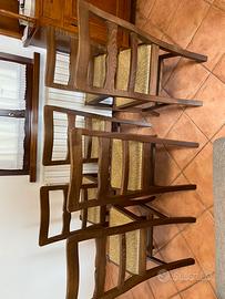 Vedo in blocco, 6 seggiole in legno di faggio, con seduta in finta paglia, con qualche segno ma in ottimo stato e seduta impeccabile.
