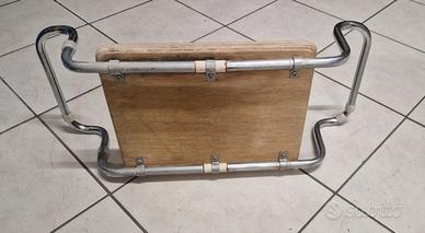 Seggiolino in tubolare cromato e sedile in legno compensato multistrato di faggio Adatto per persone anziane che hanno difficoltà a sedersi sul fondo della vasca Misure: Tubolare= 70 x 27 cm -- h 17 cm Sedile in legno= 38 x 30 cm -- h 3 cm Il sedile in legno NON è lucido, ma lasciato opaco e liscio per non scivolare Consegna a mano Varese città