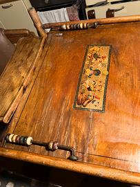 Seggiolone fine 1800 antiquariato restaurato Si trasforma in tavolino carrozzina rotelle con decoro originale e pallottoliere laterale