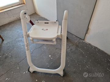 Tipologia "polly", richiudibile e con seggiolino staccabile e cinghie per poterlo attaccare direttamente alla sedia e quindi portarlo in giro.