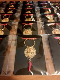 Esclusivi e fortunati: i nostri segnaposto/bomboniere a portachiavi dorati con corno rosso e nastrino rosso, sono il tocco perfetto per il tuo evento speciale! Realizzati a mano con cura e passione, questi portafortuna artigianali sono un simbolo di buona fortuna e stile raffinato.