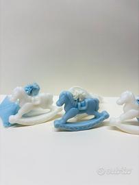Il segnaposto Cavallino a Dondola è realizzato a mano in cera di soia naturale e gesso, pensato per rendere unico il Battesimo, la nascita o il primo compleanno del tuo bimbo.