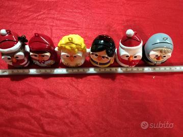 set di 6 segnaposto della collezione Goofi, Egan Christmas Edition di Conad, perfetto stato, altezza 6 cm, con fessura per cartellino nome e anellini per appendere, utilizzabili anche come palline per albero di natale