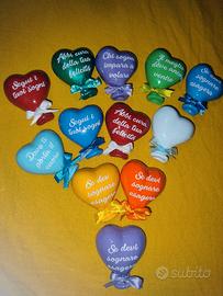Bellissimi palloncini a cuore da utilizzare come segnaposto o bomboniera. Tantissimi colori e frasi e nomi personalizzabili.