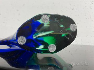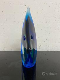 SEGUSO ARCHIMEDE (1909 - 1999) Pesce in vetro sommerso nei colori del verde e blu, anni 60. Firma presente altezza cm 21 vintage modernariato design anni 60 70