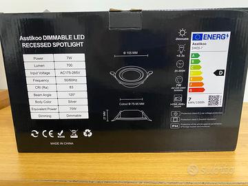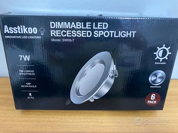 Asstikoo Faretti Led da Incasso per Cartongesso Dimmerabile 7W 700LM Downlight da Incasso a LED, IP44 Faretti LED Soffitto per Bagno Cucina 3000K 4500K 6000K Regolabile, Diametro Foro Ø75-95mm -6 pz