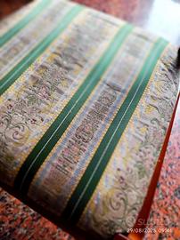 Sei poltroncine sedie tappezzate in colore verde e beige, in noce. Stile impero, del XIX secolo. Da restaurare.