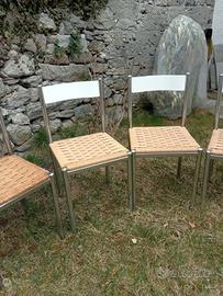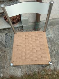 Sei sedie acciaio con seduta in corda intrecciata a mano, 20 euro cadauna, 120 totali, le sedute sono state rifatte recentemente da artigiano specializzato.