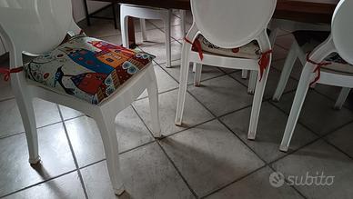 vendo per inutilizzo sei sedie bianche utilizzate pochissimo per tavolo secondario complete di cuscini e feltrini di silicone trasparente. Con marchio originale Elizabeth, modello Siesta Exclusive. Qualità top.