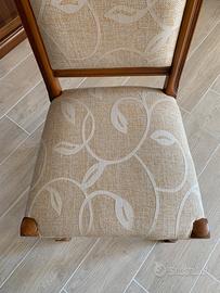 6 sedie da sala in legno e tessuto presentano piccolissimi segni di usura sul legno ma il tessuto è intatto, mantenute in ottimo stato.