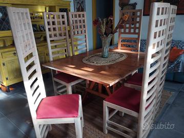 bellissime sedie mod. mackintosh in legno massello chiaro, seduta con tappezzeria raso bordeaux. misure cm h144 - prof 45- larg 40, altezza seduta compreso cuscino 46cm