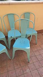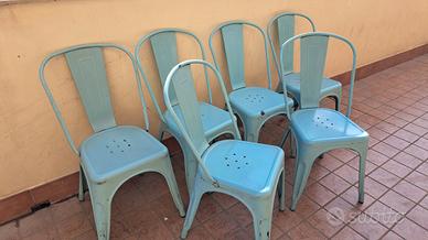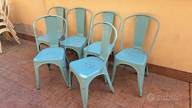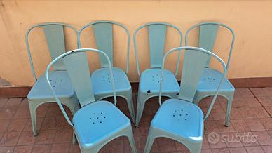gruppo di 6 sedie replica tolix colore celeste. Struttura solida e in ottimo stato ,la verniciatura presenta piccoli segni del tempo e dell utilizzo ,ma restano ottimamente utilizzabili...M&P Antichità siamo un negozio specializzato in antiquariato vintage e shabby vendita al dettaglio e all ingrosso scarichi settimanali oltre 500 articoli in negozio, abbiamo una vasta scelta di como comodini tolette armadi letti vetrine vetrinette credenze servanti angoliere librerie tavoli tavolinetti sedie poltrone poltroncine divani lampade lampadari tappeti scrivanie scrittoi secretere ribaltine consolle quadri cornici specchi cassapanche bauli oggettistica varia idee regalo e molto altro ci troviamo a Roma zona Castelverde via Massa San giuliano 26b POSSIBILITÀ DI CONSEGNA E SPEDIZIONE IN TUTTA ITALIA PER INFO LUCA