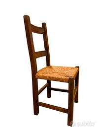 Sei sedie rustiche, impagliate, in castagno massello.