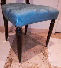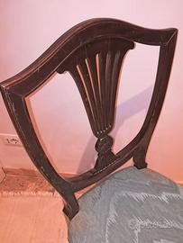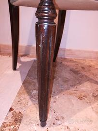 Sei sedie stile inglese presumibilmente in mogano, realizzate negli anni '60. in ottime condizioni, stabili, seduta in tessuto in perfette condizioni. necessitano un parziale restauro dello schienale. Acquistabili anche singolarmente. EUR 80 l'una, trattabili