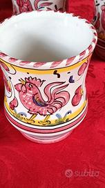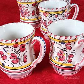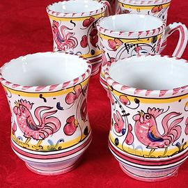 Sei tazze mug ceramica Deruta originale decorazione galletto rosso Nuove mai usate Altezza cm 10 diametro 8 circa