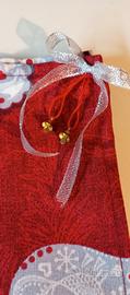 sei tovagliette americane in puro cotone fantasia natalizia con stelle e cuori argento su fondo rosso con fiocchetti di raso argento e campanelli. È possibile ordinarne un numero diverso. Fatti a mano!