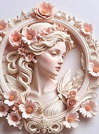 L’immagine è altamente dettagliata: ogni ciocca di capelli, fiore e tratto del viso è scolpito con straordinaria precisione. Il risultato è davvero suggestivo e realistico.