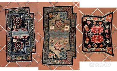 Vendo collezione privata cmposta di 6 coprisella tibetani autentici annodati a mano, realizzati tra gli anni ’30 e ’70. Ogni pezzo presenta motivi tradizionali tibetani come draghi, fiori di loto, greche e simboli spirituali, con colorazioni originali in lana naturale.