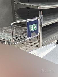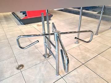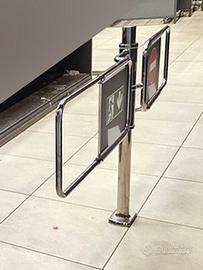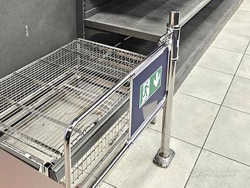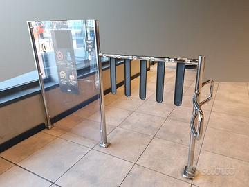 separatore market con tornello usato, in realtà si tratta di: - 530cm di divisorio paletti/policarbonato, tornello d'entrata 130cm, passa carrelli 105cm, divisorio con un policarbonato da 110cm circa, lunghezza totale 885cm h150cm - 1.100,00€ iva esclusa - 2 sbarre "solo entrata" 105cm passaggio 95cm h100cm circa (una cromata e una verniciata grigio) - 150,00€ cad. - doppia sbarra entrata+uscita passaggi 95cm totale 200cm h105cm - 280,00€ se acquisti tutto il lotto spendi 1.500,00€