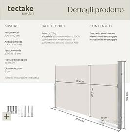 TecTake® Tenda Frangivento a Scorrimento, Paravento Estraibile Esterno, Frangivista con Meccanismo Automatico, Protezione Solare e Privacy, Ideale per Balconi e Terrazzi, 180x300 cm - Beige