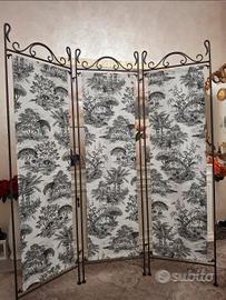 Separé vintage in perfette condizioni restaurato in ferro battuto con tessuto dabilface. Misura 180cm di altezza, 150cm di larghezza, composto di 3 sezioni da 50cm. Adatto per lo studio, negozio o per la casa. Per motivi di dimensioni e peso NON spedisco.