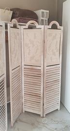 Vendo elegante separé in legno bianco a più ante, perfetto per dividere ambienti con stile sia in casa che all’esterno (terrazzo, giardino coperto, locale, studio).
