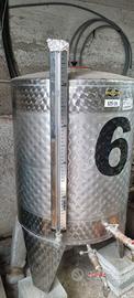 Serbatoio refrigerato adatto per la fermentazione di vino o birra, ma senza utilizzare la refrigerazione si può utilizzare come serbatoio per qualsiasi liquido alimentare (Olio, Latte, Acqua, ecc.) realizzato interamente in acciaio inox per alimenti, con interno lucidato a specchio ed esterno fiorettato. Questo serbatoio con fondo conico è dotato di tre piedi. Sono corredati di tasca refrigerante e chiusino antiritenzione.