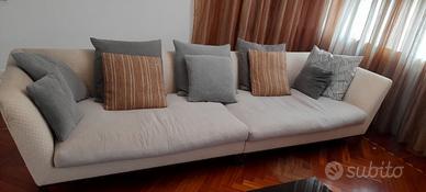 numero due divani due posti che formano unendoli un divano quattro posti, buone condizioni ,venduti con 10 cuscinetti, misure per divano lunghezza mt 1.60 altezza cm 88 profondità mt 1, unendoli lunghezza quattro posti mt 3.20