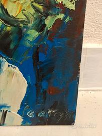 Opera originale del maestro fiorentino Sergio Scatizzi, Vaso di fiori, molto materico, olio su compensato, cm. 34x14,50. Firmato in basso a destra e dietro.