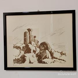 Stampe riproduzioni di monumenti e chiese della città di Agrigento (originali in inchiostro di china).
