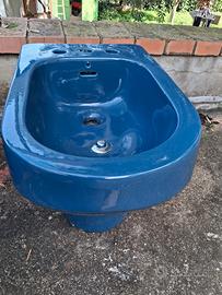 Vendo serie sanitari Dolomite serie ALPINA anni 70, all'avanguardia del design per l'epoca, si distiguevano tra i tanti sanitari banali soprattutto per il loro particolare punto di blu. Perfetti, introvabili in queste condizioni, soprattutto per la presenza di tutti gli accessori originali da incasso abbinati. Qualità dello smalto e "peso" d'altri tempi. 3 fori. Wc scarico a terra, disponibile anche la tavoloccia originale dell'epoca del medesimo colore. Ideali per il recupero di stanza da bagno in stile anni 70.
