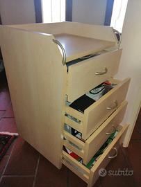 Vendo in blocco o separatamente mobiletti da camera: n°1 Scrivania 120x52 h 81 €10 (ho anche cassetto tolto x malfunzionamento) n°1 Mensola con 2 cassettini 116x28 h60 €60 n°2 Panche cassettone (anche uso comodino)90x69 h51 con cassettone 57x41 h53 € 60 cadauno (120) n°1 comodino 3 cassetti 57x41 h53 €60 n°1 Cassettiera 4 cassetti e 4 ruote pivottanti L.46xP.36 h65 €30 Acquisto in blocco totale € 250 (anzichè 280)