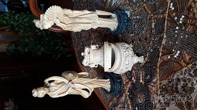 serie di arredo giapponese con 2 colonne altezza 1 mt. - 2 statuette 40 cm. un posacenere - un vaso da 50 cm. - tavolino rotondo - porta gioie - tutto come da foto in ottimo stato.