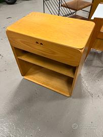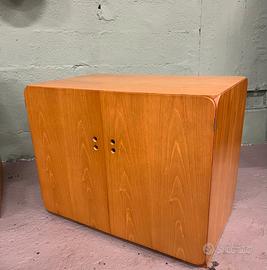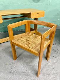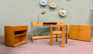 “Serie Samara” set scrivania e mobili disegnato da Derk Van de Vries (Obergum, 1917 – Veendam, 1991) prodotto da MAISA, Belgio 70s. Composto da scrivania e due mobili in frassino, sedia in frassino e canna d’India.