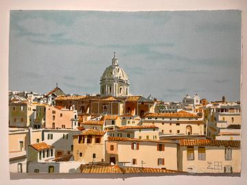 Serigrafia Aldo Riso Prova d’autore -Tetti di Roma