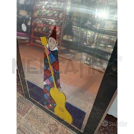 SERIGRAFIA ALLUMINIO WALTER POZZI ARLECCHINO CON CHITARRA BUONE CONDIZIONI 80X60