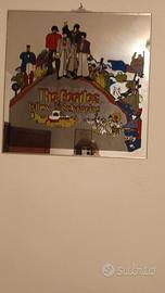 Bellissimo specchio con serigrafia dei Beatles nell'album Yellow submarins. Oggetto vintage anni 60. Grandezza 34*34. Specchio magico psichedelico per vedersi insieme al più grande gruppo della storia.