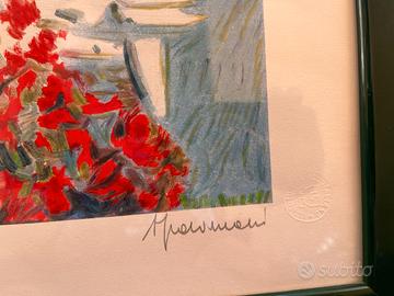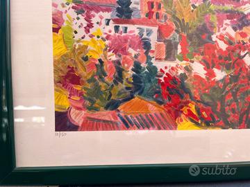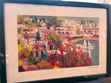 Serigrafia 40x50 anni 1990/2000 artista ATHOS FACCINCANI (paesaggio marino, Capri/Portofino) completo di cornice