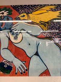 Serigrafia donna con colombo a firma Guillaume Corneille. Ottime condizioni generali. Non presenta certificato. Dimensioni foglio 57x67cm