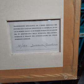 Trasposizione serigrafica numerata e autenticata di Gigi Candiani dal figlio Domenico Candiani in anniversario del XV anno della scomparsa dell'autore. 18/120 1978 "autunno a teolo " del 1962. 68x74 con cornice.