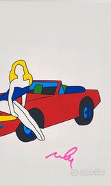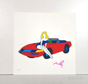 Vendo serigrafia originale di Marco Lodola, tecnica serigrafia su cartoncino, dimensioni cm 30x30. Opera firmata a mano dall’artista in basso a destra e numerata H.C. (esemplare fuori commercio) in basso a sinistra. Completa di certificato di garanzia e provenienza rilasciato da galleria d’arte. Condizioni perfette. Stile tipico pop art Lodola, soggetto donna su auto sportiva, colori vivaci. Ideale per collezionisti o arredamento moderno. Prezzo: 210 € leggermente trattabili Consegna a mano o spedizione disponibile.